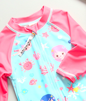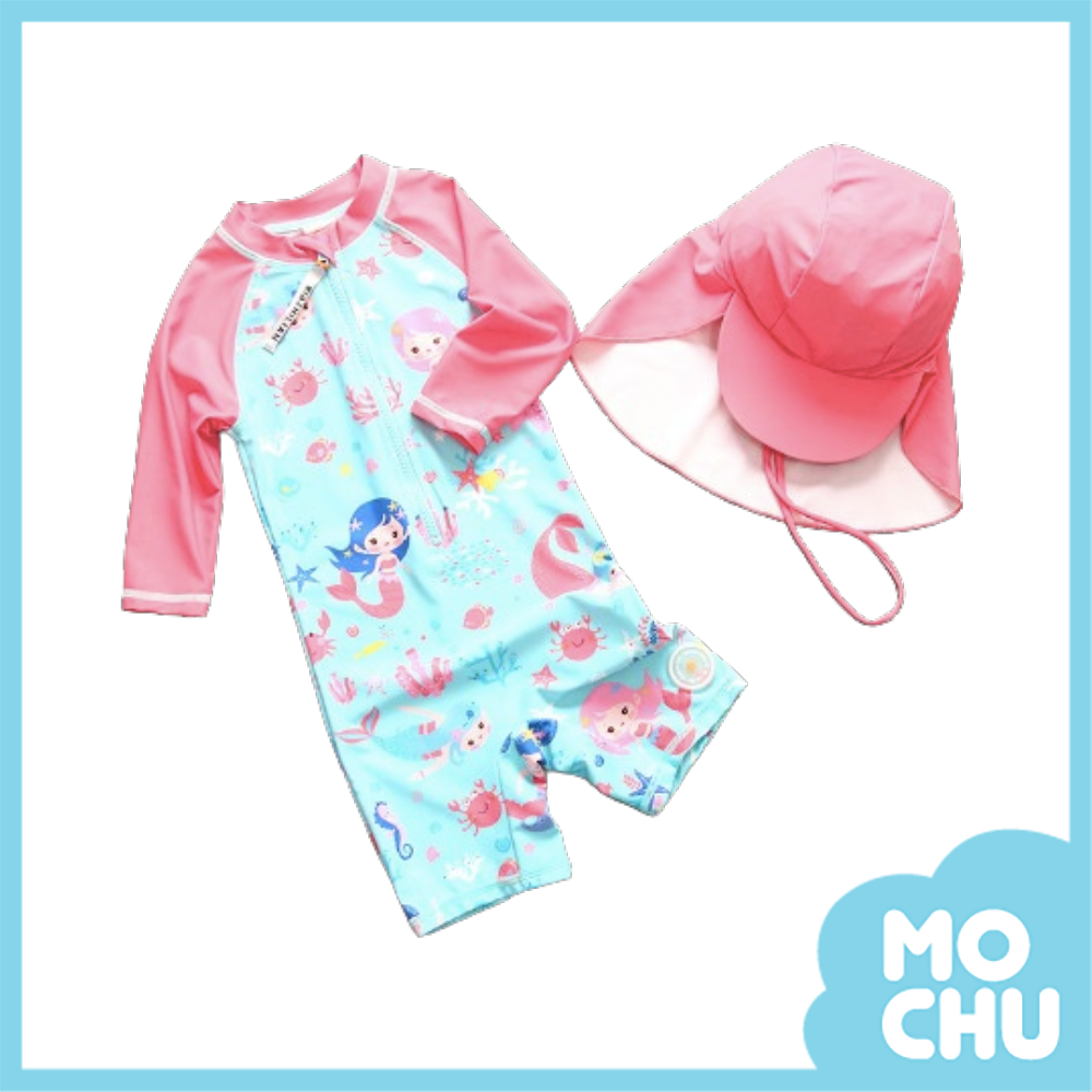 海底世界長袖連身泳裝(含遮陽帽)