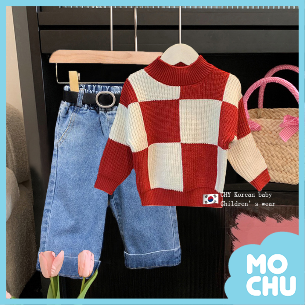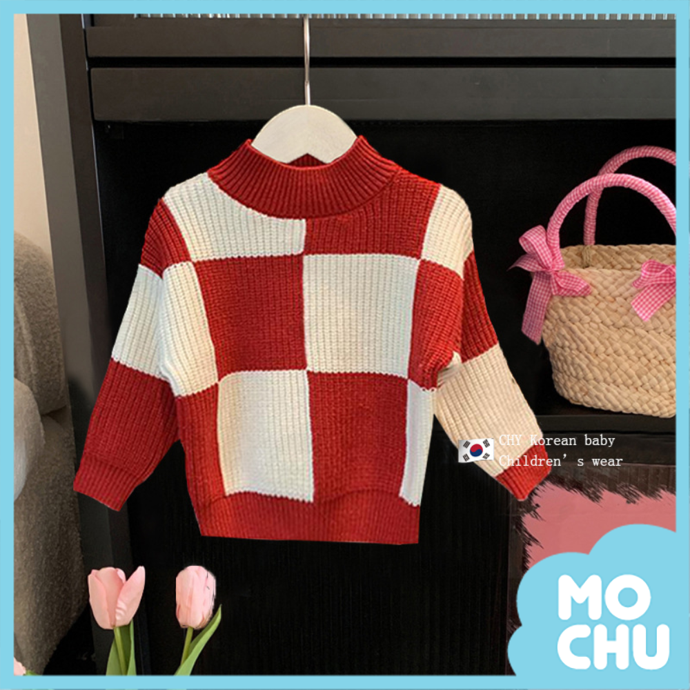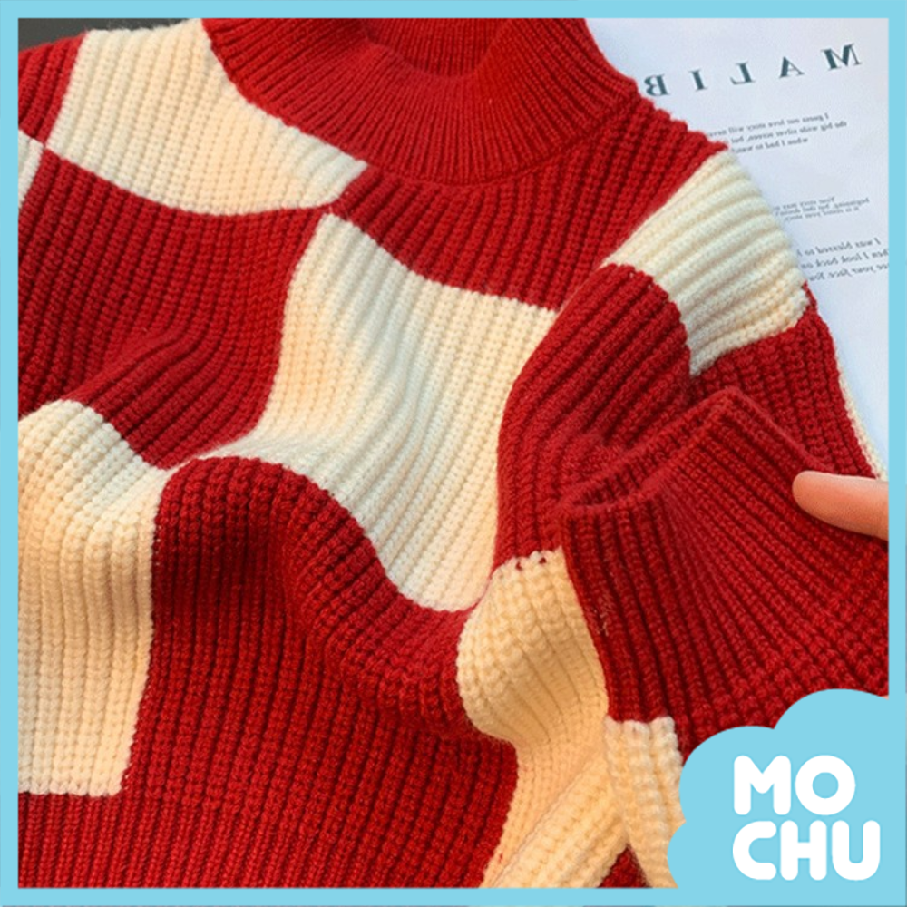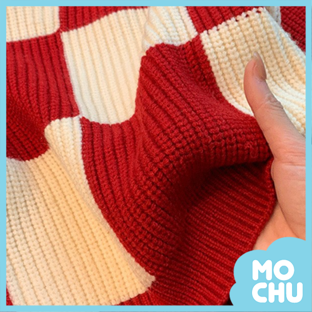 紅白格長袖毛衣