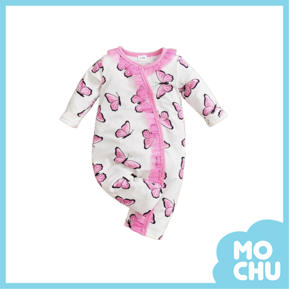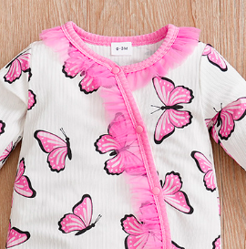 蝴蝶粉紗長袖連身衣