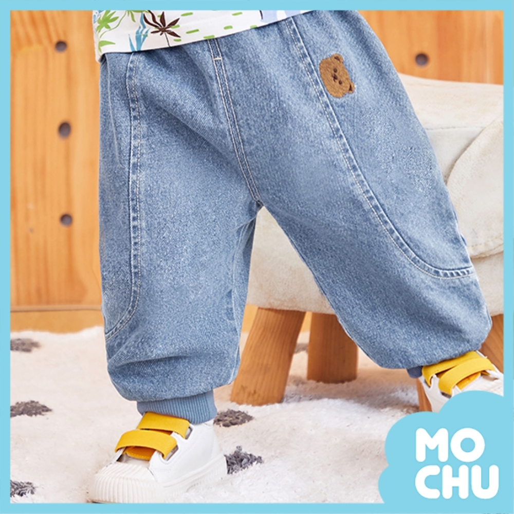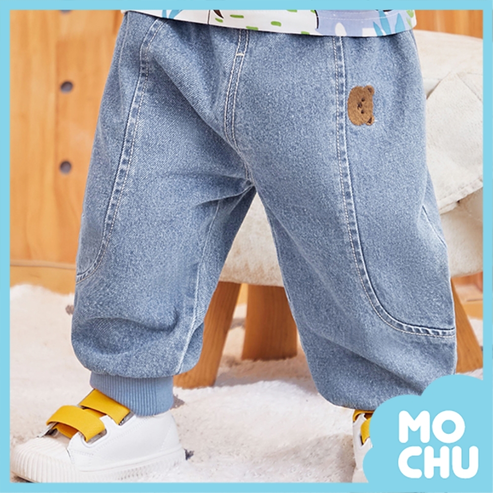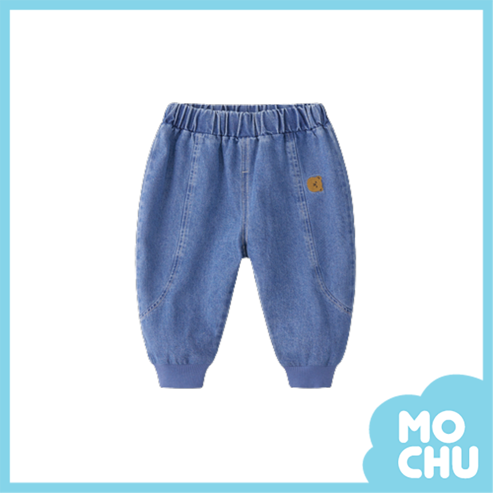 刺繡小熊彈力腰牛仔長褲(兩色)