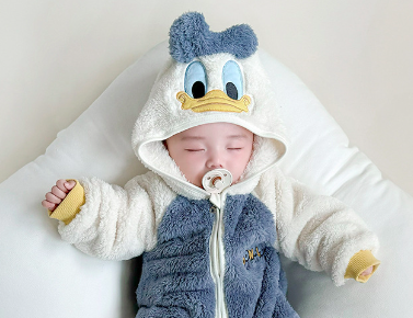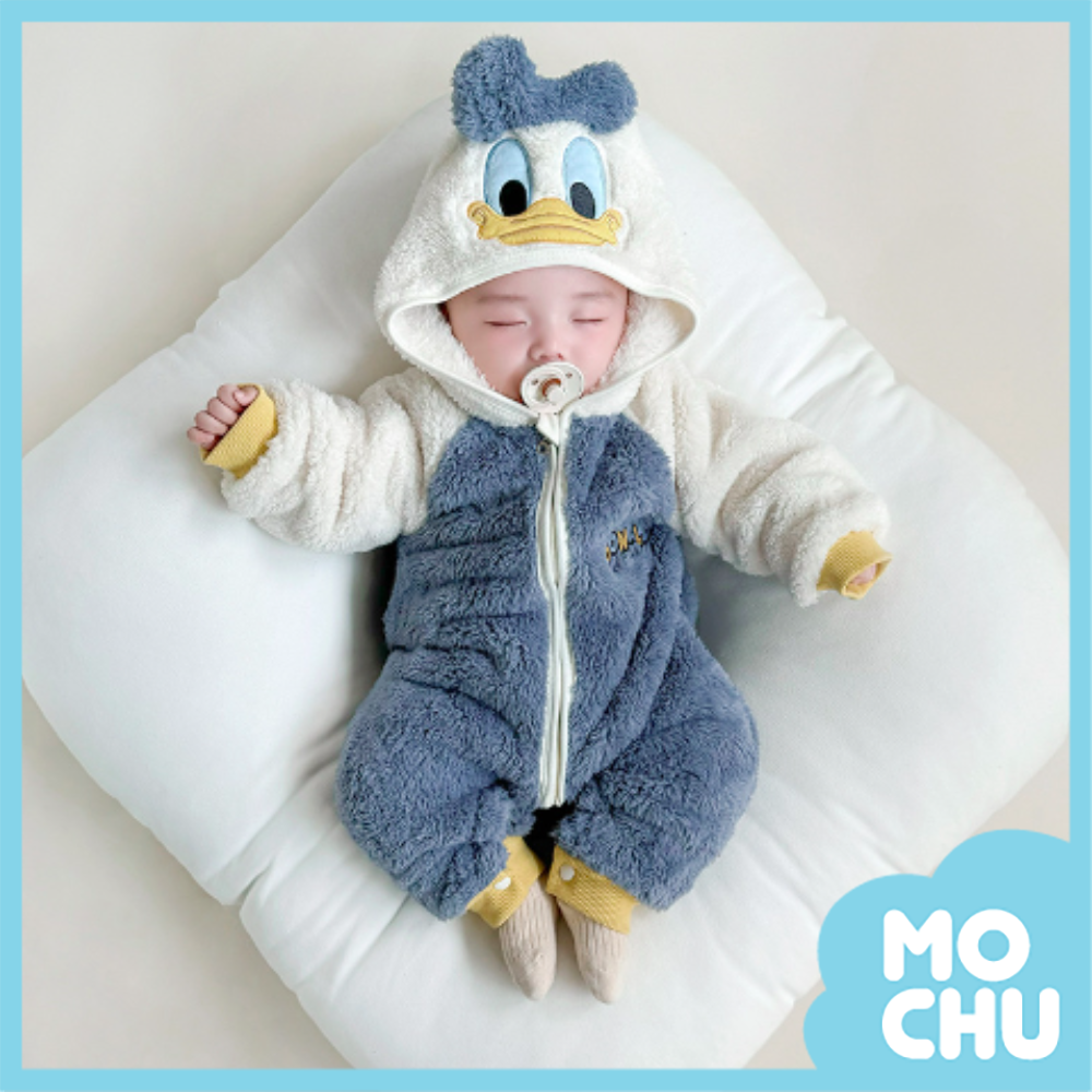唐老鴨加絨拉鍊連帽包屁衣