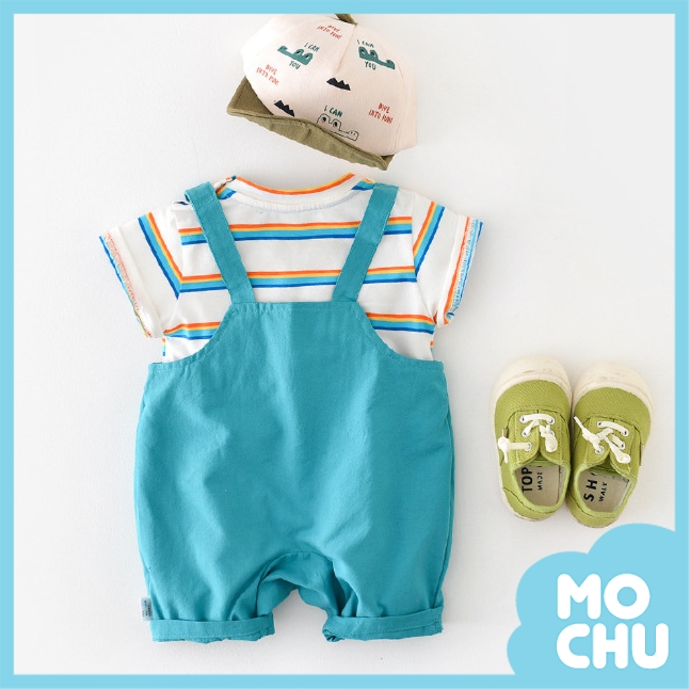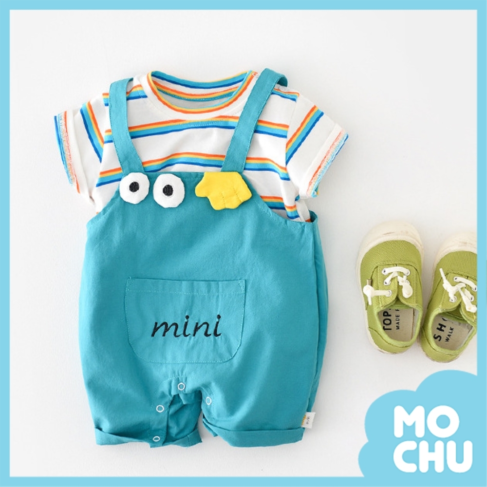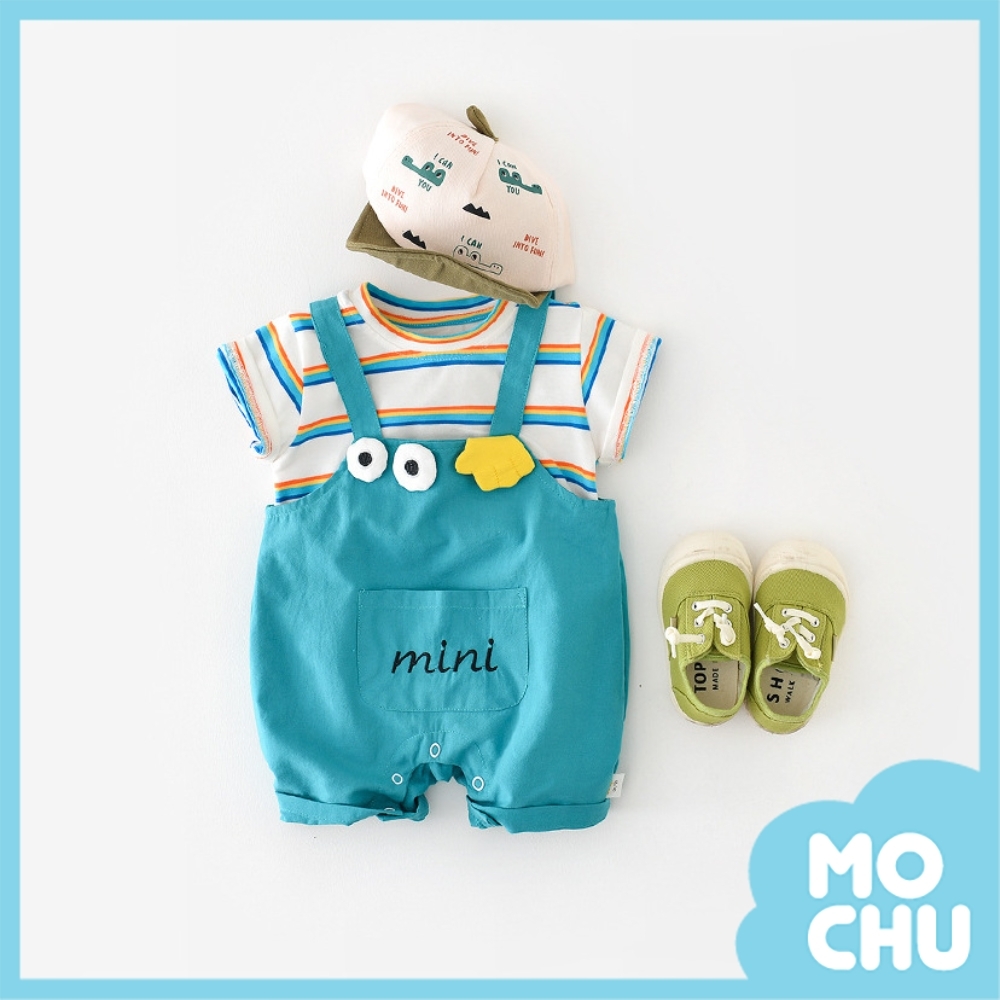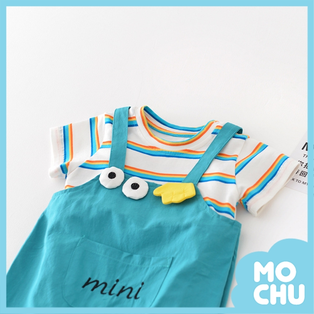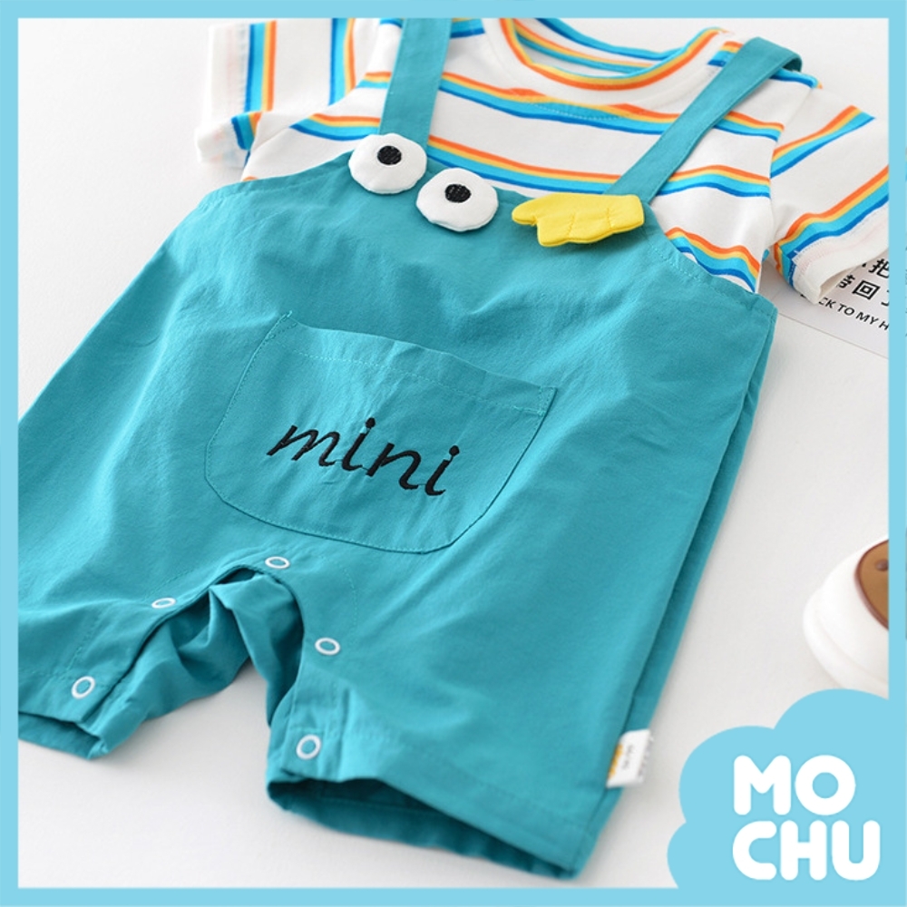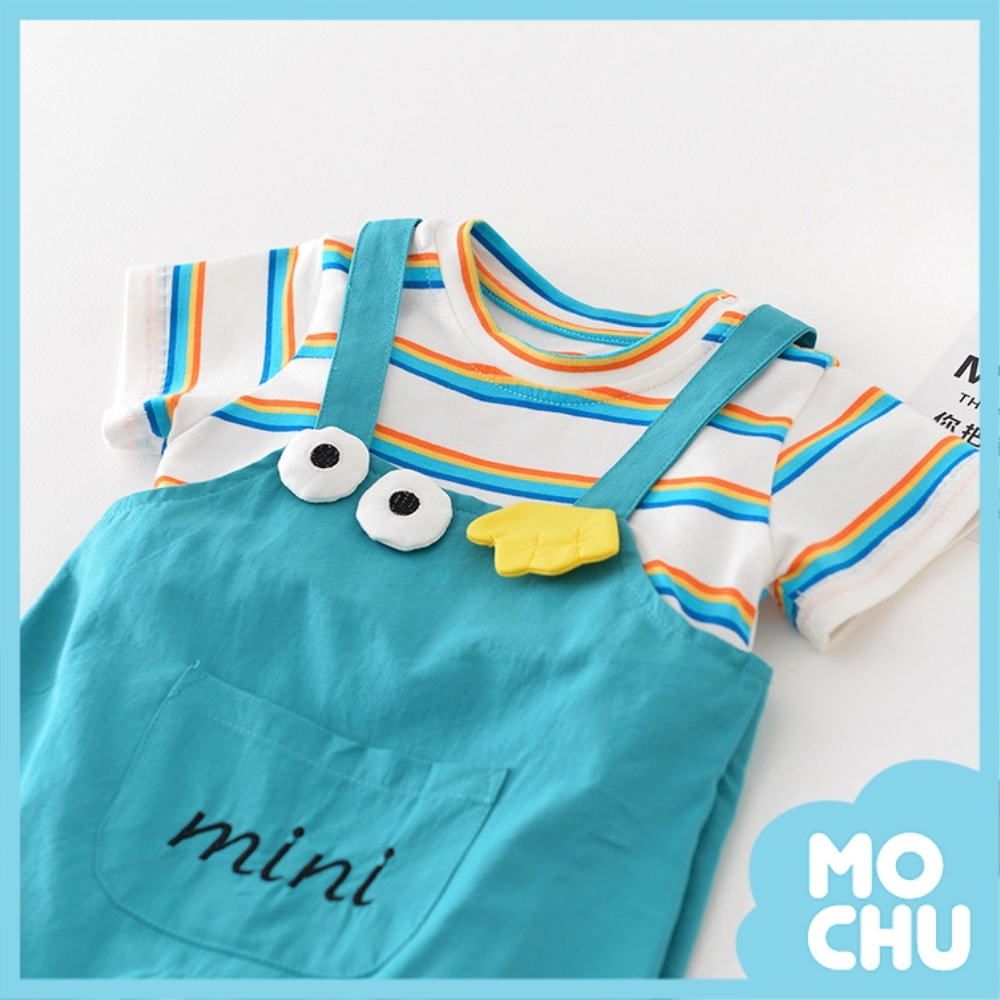 大眼睛彩虹條紋假兩件連身衣