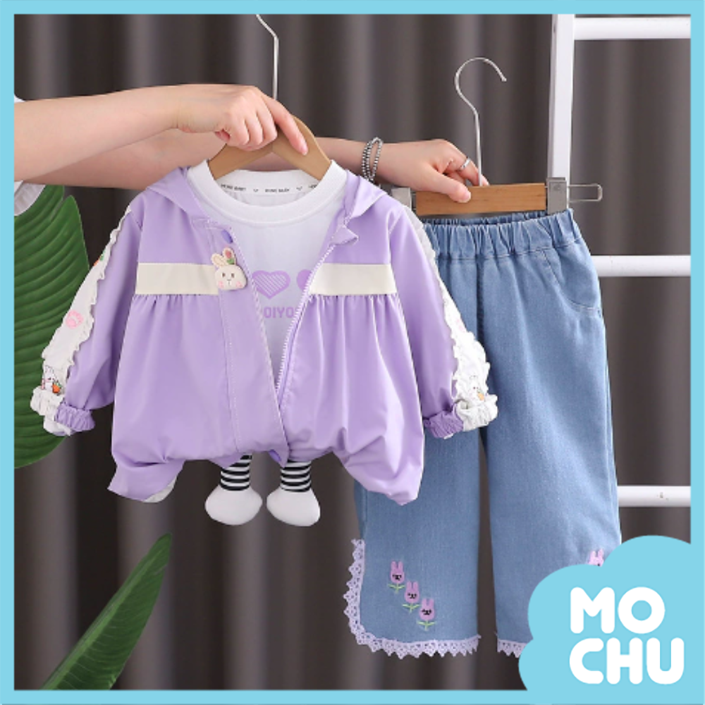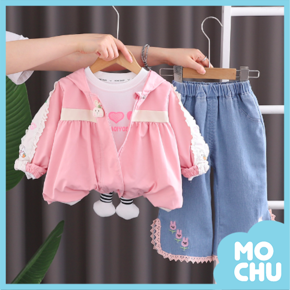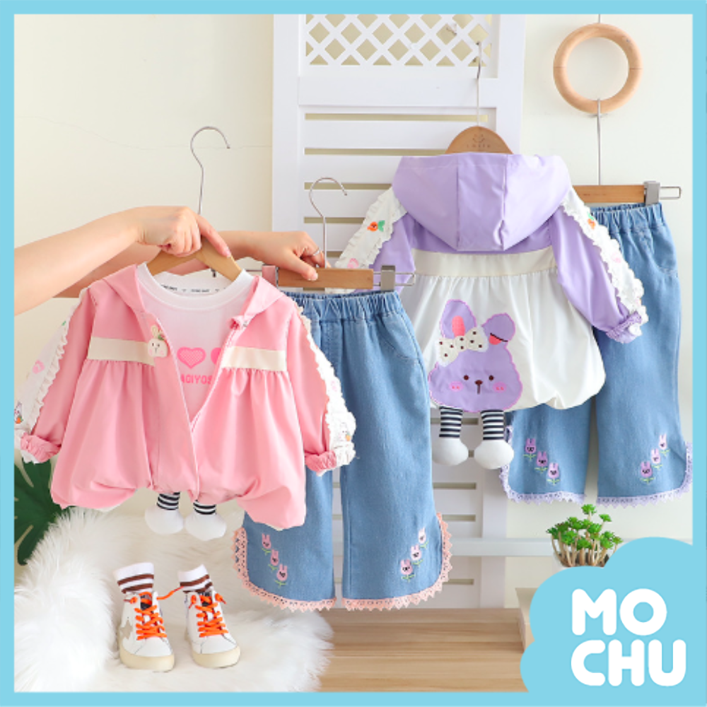 小兔頭澎澎風衣牛仔套裝(二色)