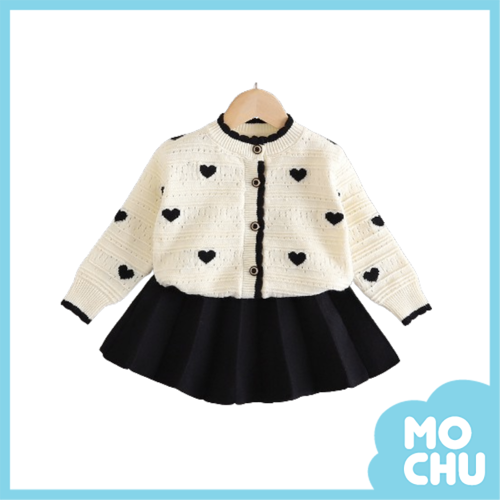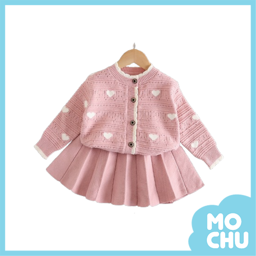 小愛心毛衣百摺裙套裝(二色)