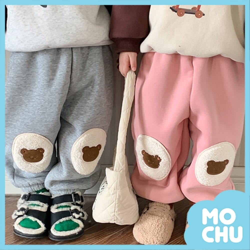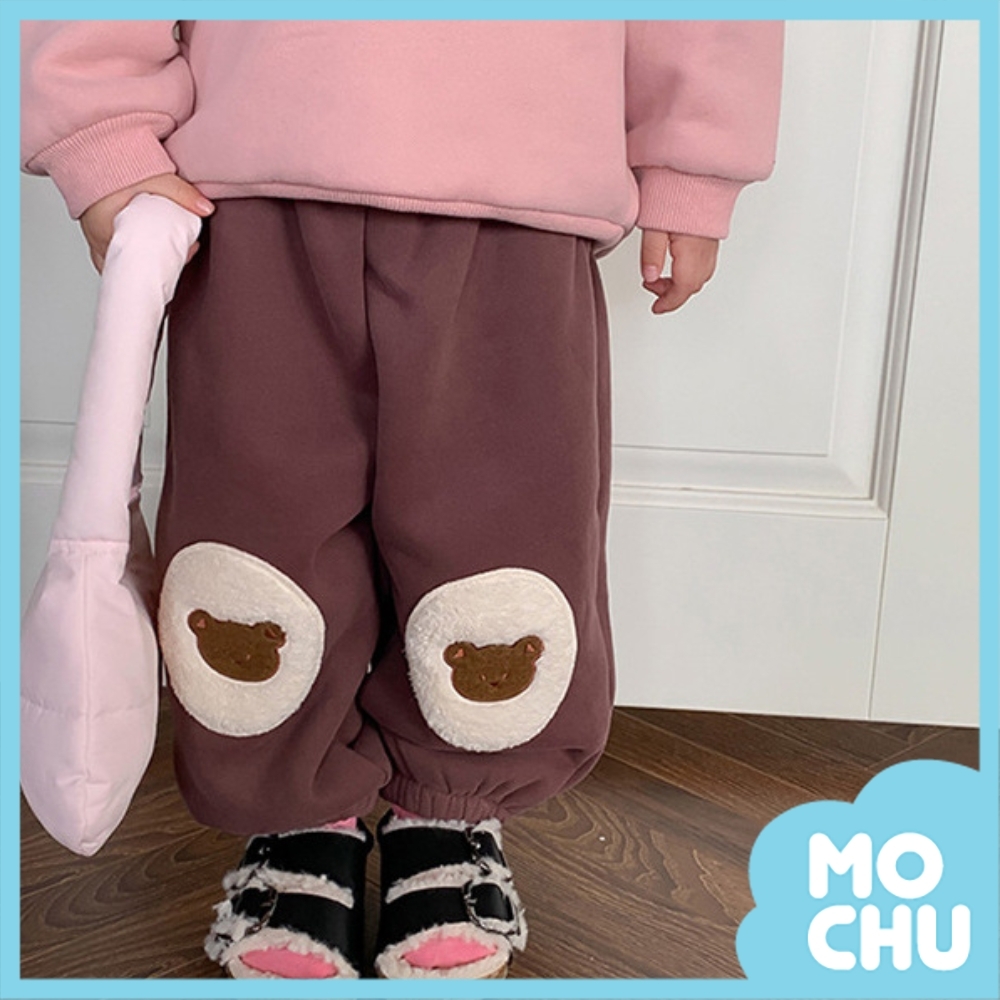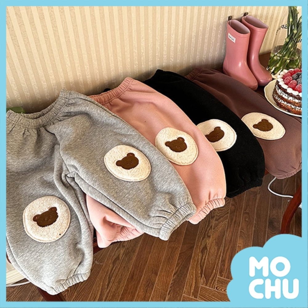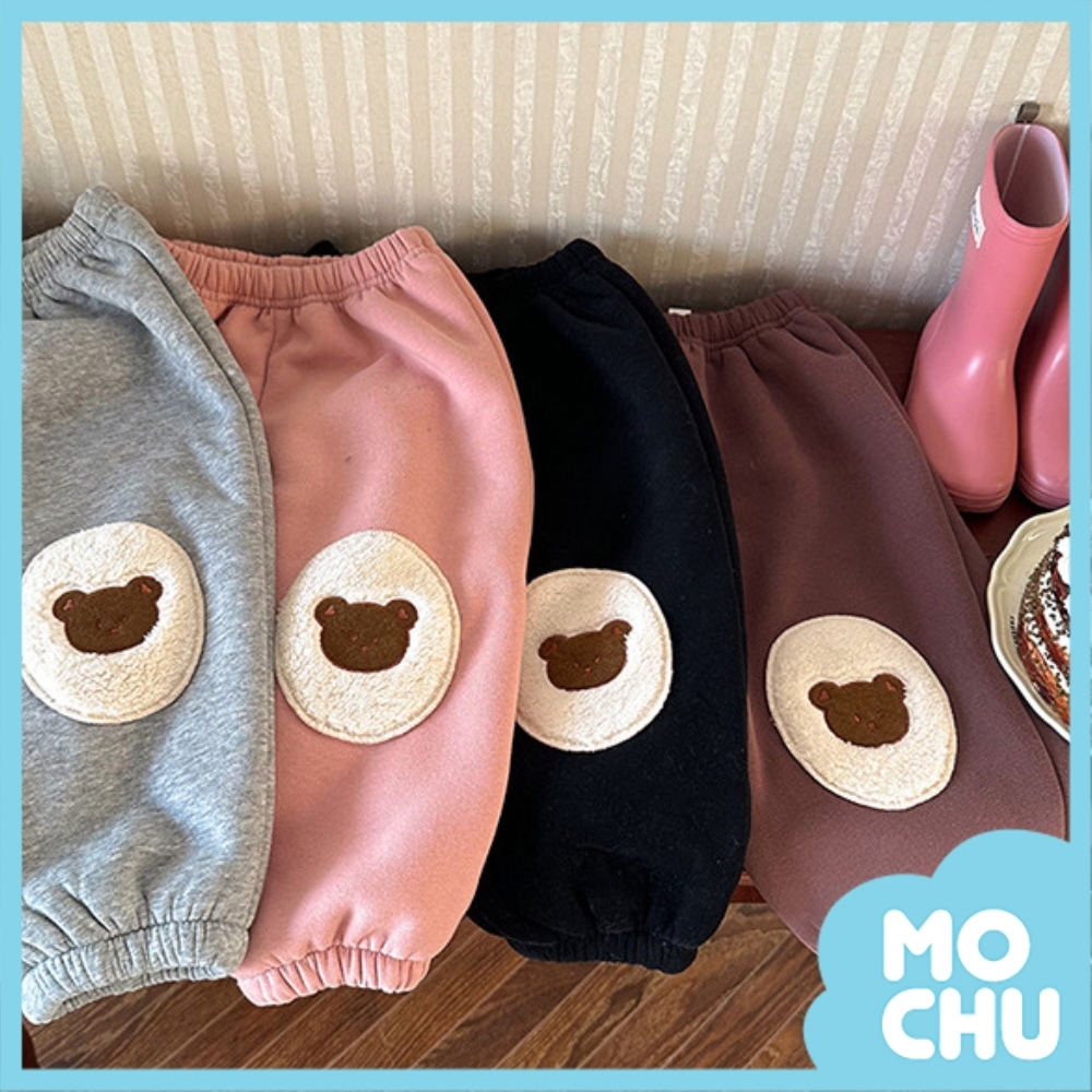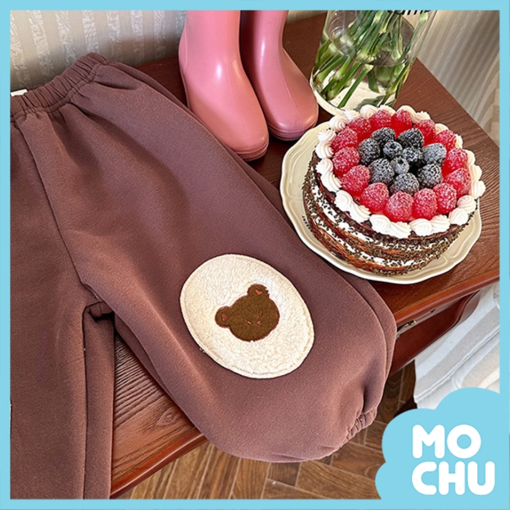 小熊貼布加絨加厚衛褲(三色)