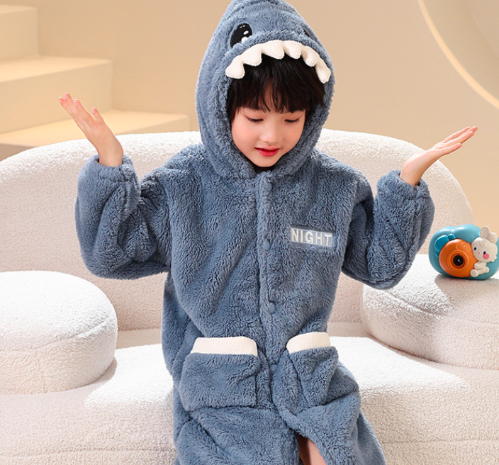 小藍鯊珊瑚絨睡袍