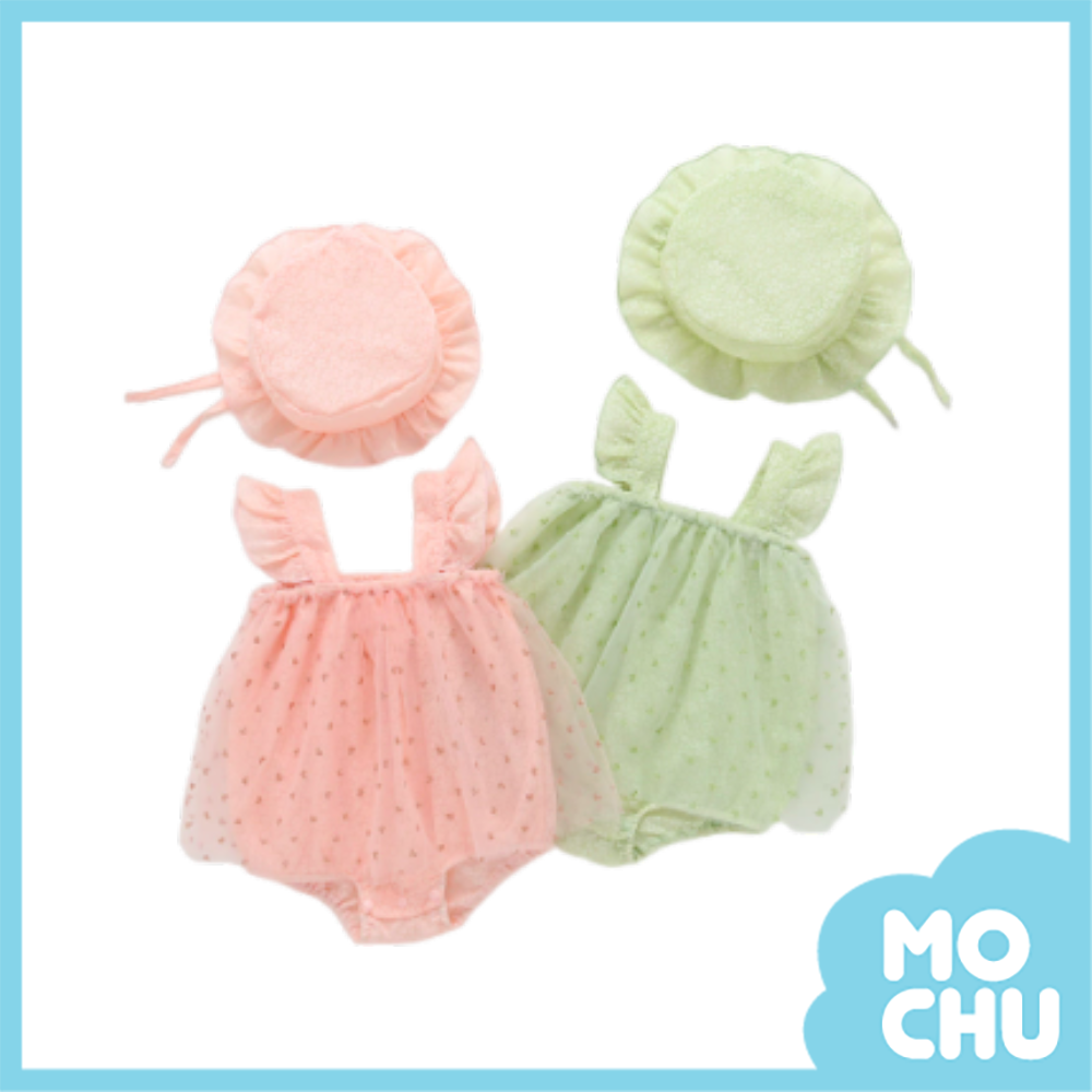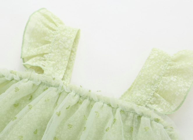 愛心網紗飛袖吊帶包屁衣(二色)