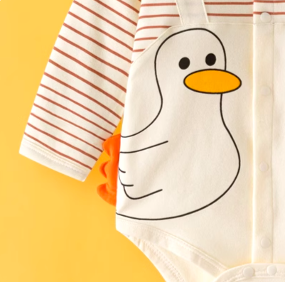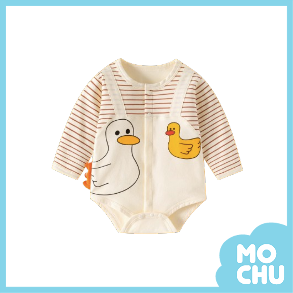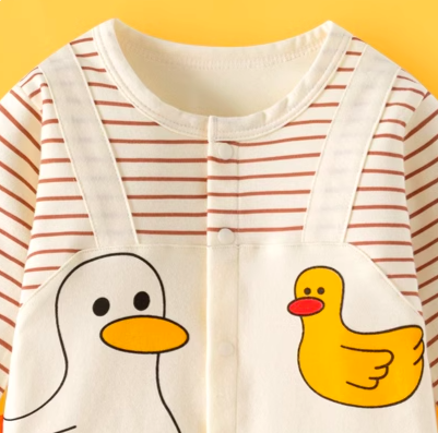 條紋鴨長袖包屁衣