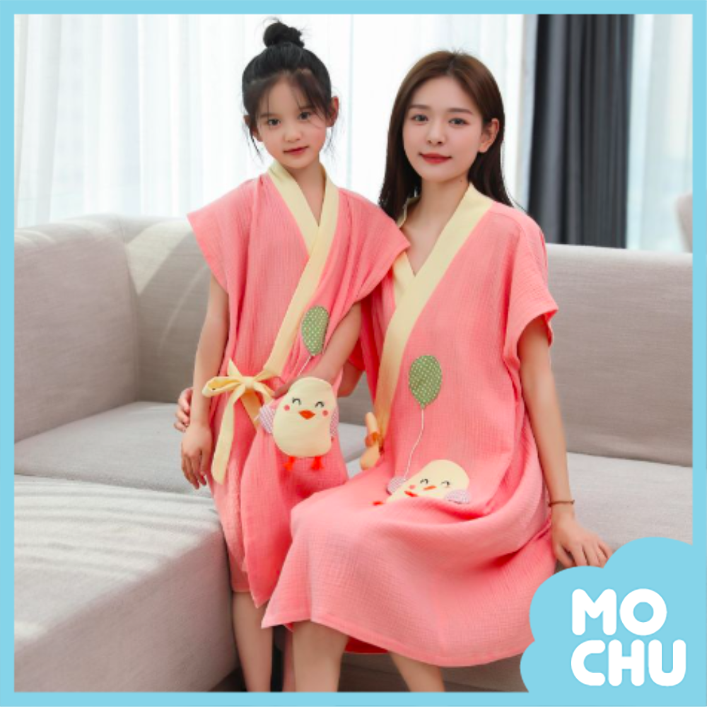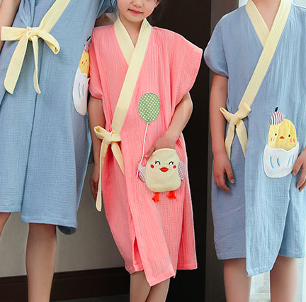 氣球小雞純棉紗布親子浴袍