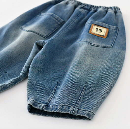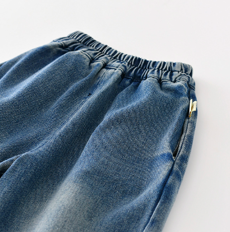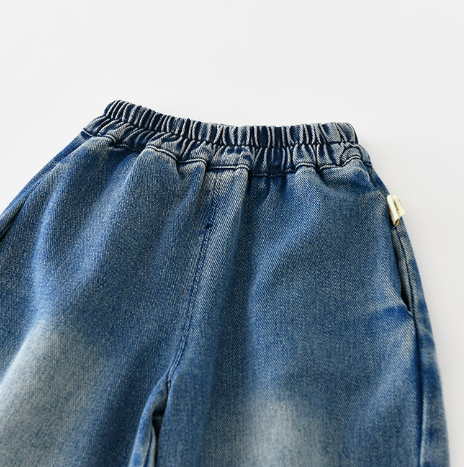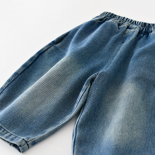 水洗闊腿牛仔長褲