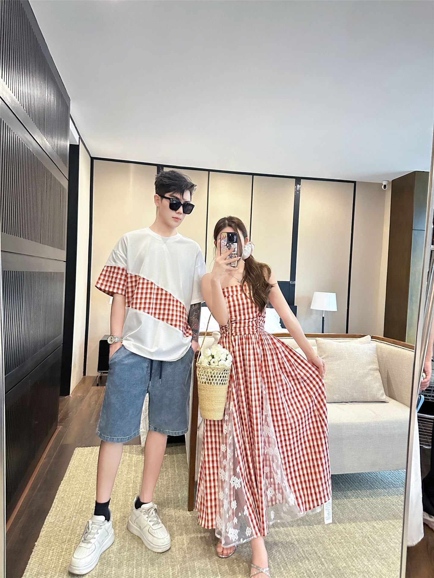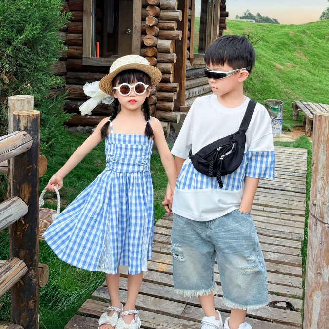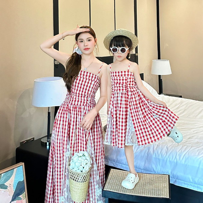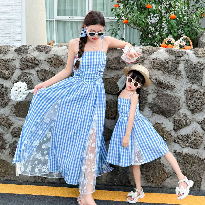 法式拼接格子親子裝(二色)
