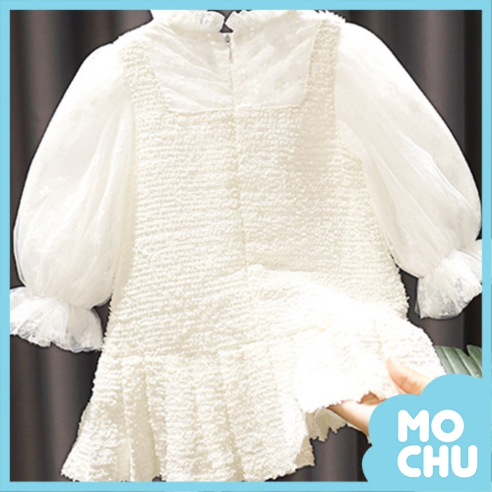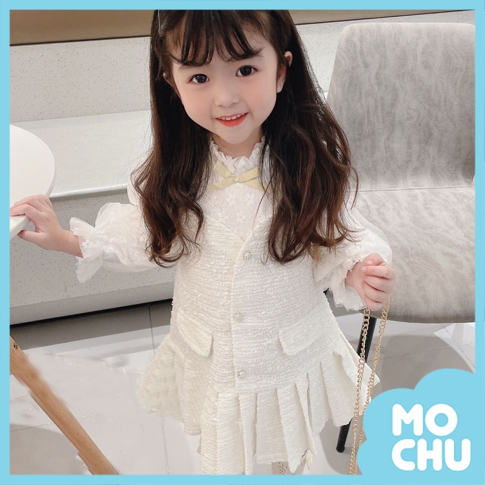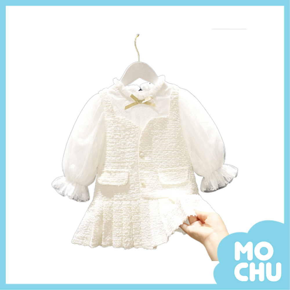 珍珠排扣假兩件連衣裙