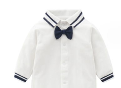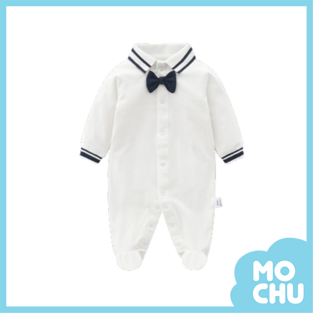 白底領結包腳連身衣