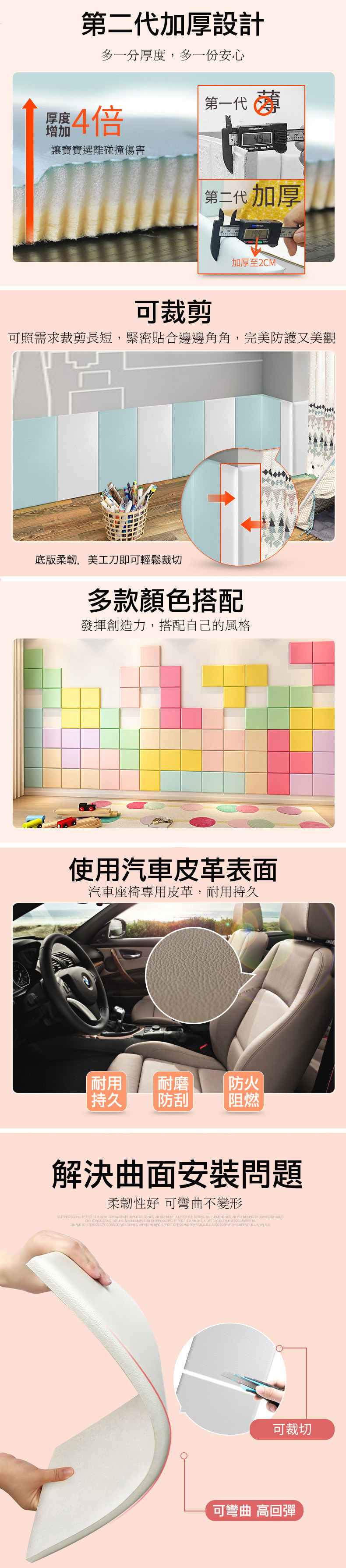 粉嫩色系防撞軟墊牆貼(單片多款)