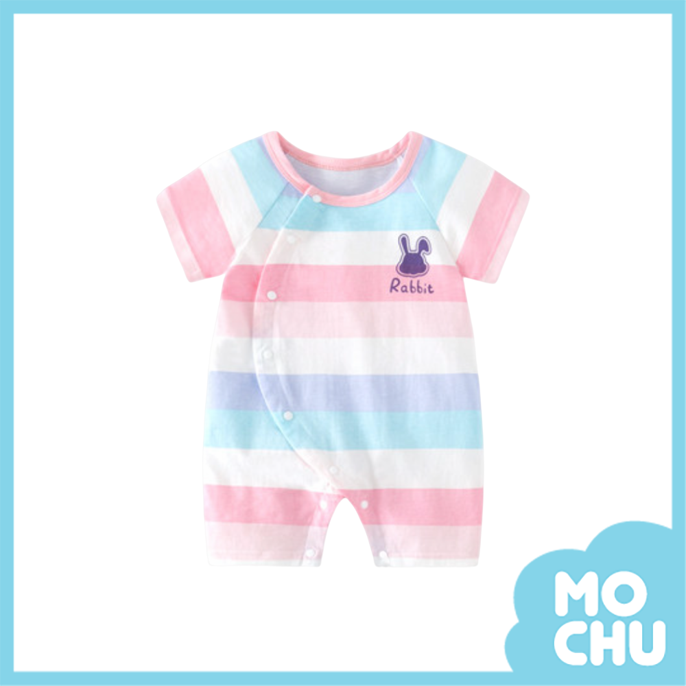 粉彩條紋兔短袖連身衣