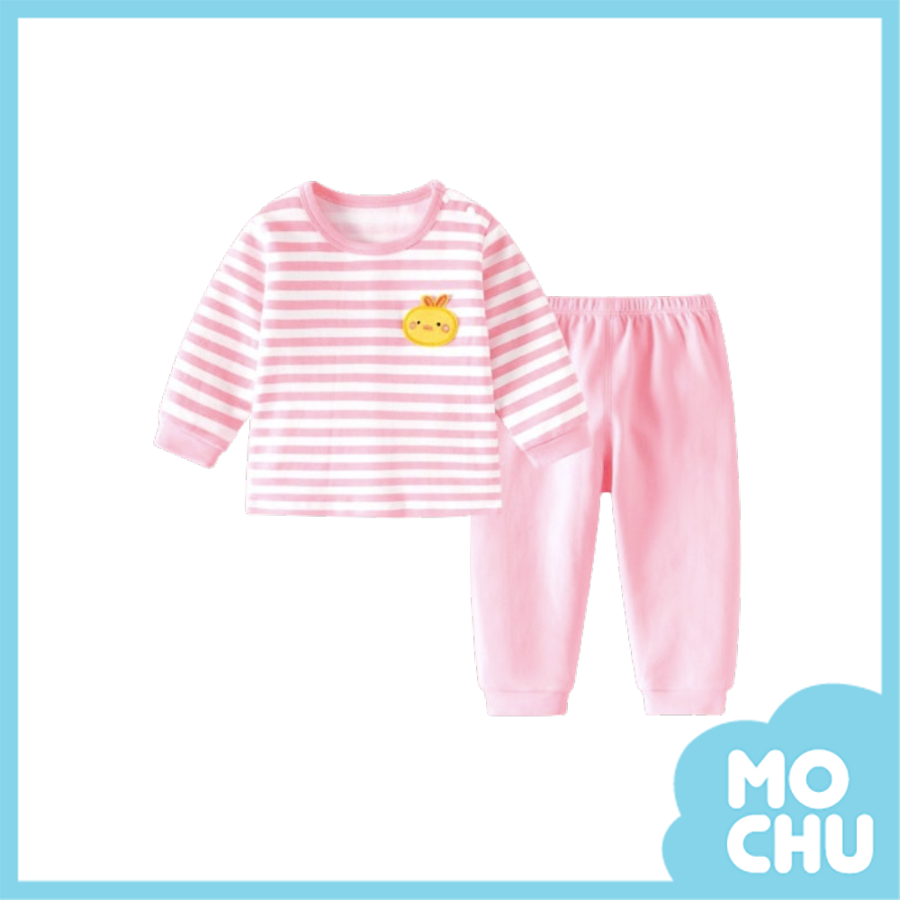 粉色條紋鴨長袖家居服套裝