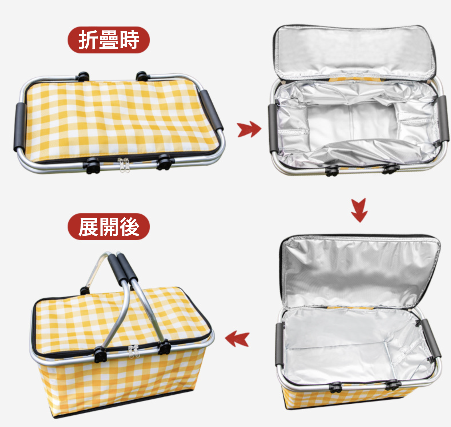 經典格紋牛津布野餐提籃(四色)