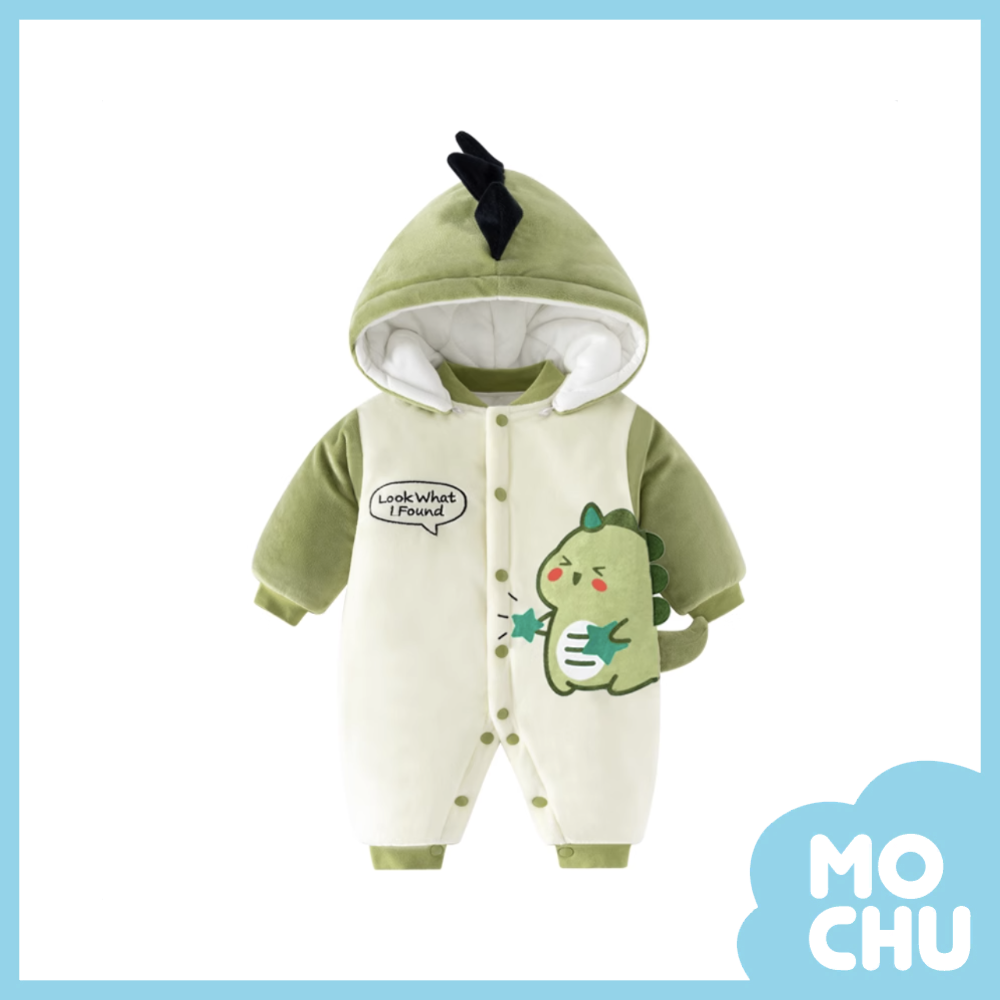 綠色恐龍加絨加厚連身衣