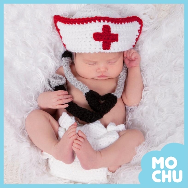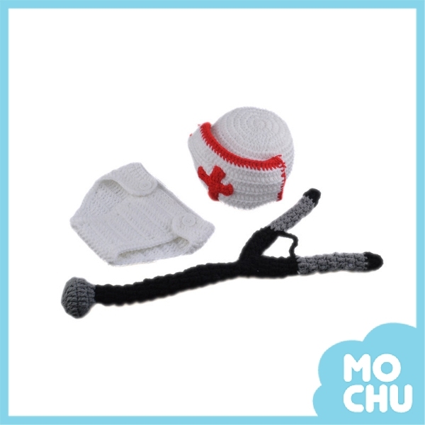 商品內容:包含帽子、包屁褲、聽診器(不含背景)